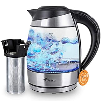 TRESKO Glas Wasserkocher 1,8L Edelstahl mit Teesieb und Kalkfilter