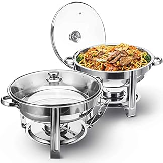 【2er Abschaum Chafing Dish Buffetwärmer-Sets】Der runde Chafing Dish ist perfekt für Familie, Geschäft, Partys oder Hochzeiten. Keine Stromversorgung, bekannt als für Mahlzeiten im Freien Sinnvoll.