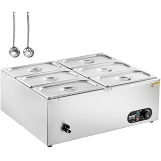 - VEVOR kommerzieller Speisenwärmer 6 x 5 Qt Speisebehälter (1/3 Größe), elektrische Warmhalteplatte, 1500 W professionelles Buffet-Set aus Edelstahl, Buffet-Bain-Marie, 30–85 °C TemperaturregelungAngebot! Ursprünglicher Preis war: €170,78€162,38Aktueller Preis ist: €162,38.Produkt kaufen