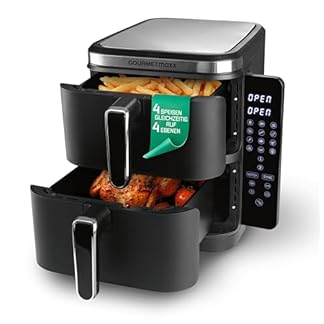 €64,99Produkt kaufenGOURMETmaxx FryUp Vertikale Doppelkammer Heißluftfritteuse | Airfryer 10 Liter | 4 Speisen auf 4 Ebenen | klappbares Touchdisplay | 32% platzsparender | Heißluftfritteuse 2 Kammern