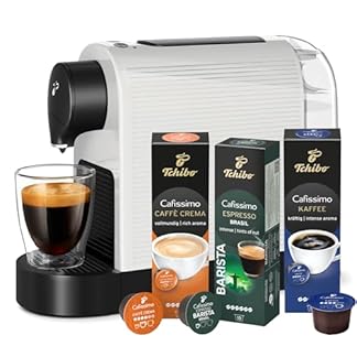 €44,00Produkt kaufenTchibo Cafissimo Pure plus Kaffeemaschine Kapselmaschine inkl. 30 Kapseln für Caffè Crema, Espresso und Kaffee | 0,8l | 1250 Watt | 11,9 x 33,7 x 24 cm | Schwarz