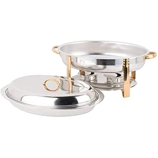 hyywmgx 201 Edelstahl Chafing Dish Buffetwärmer-Set, 3,5L Runde Chafer Dish Gold Warmhaltebehälter mit Deckel und…