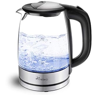 €39,79Produkt kaufenTRESKO Glas Wasserkocher 1.7L – 2200W | LED-Beleuchtung | BPA -frei | 360° Edelstahl Sockel | Abschaltautomatik | Filter