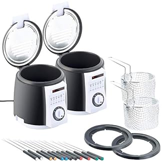 €35,99Produkt kaufenRosenstein & Söhne Kleine Friteuse: 2er-Set kompakte Tisch-Fritteusen mit Fondue-Set, 0,9 Liter, 840 Watt (Fondue…