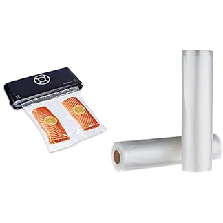Amazon Basics – Vakuumierer, 30 cm Naht + 10 Vakuumierbeutel, Schwarz & 22 cm x 500 cm, 2 Rollen für Vakuumierer