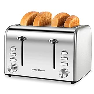 Automatik Toaster 4 Scheiben, Edelstahl Toaster 1600W, 6 bräunungsstufen und 3 Moden (Auftau, Aufwärm sowie…
