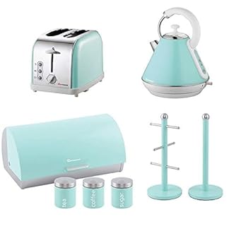 Set aus Toaster, Wasserkocher, Brotkorb, 3 Aufbewahrungsdosen, Becherbaum und Küchenrollenhalter – Mintgrün