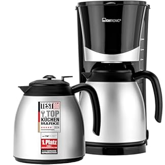 €27,94Produkt kaufenClatronic® Kaffeemaschine mit Thermokanne | inkl. 2 Thermokannen je 1 Liter | Kaffeeautomat für 8-10 Tassen Filterkaffee | Tropfstopp & Auto-Abschaltung | Filtereinsatz herausnehmbar | KA 3328 schwarz