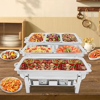 - Mermajestic Chafing Dish Edelstahl 9L, DREI Größen Fach Futterschale, Buffet-Set Warmhaltebehälter, 410 Edelstahl Speisenwärmer, Herausnehmbaren Buffetwärmer für Catering und Buffet (2 Futterschalen)€48,00Produkt kaufen