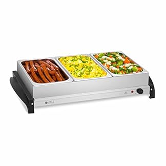 - Buffetwärmer – Elektrisch, mit Heizplattenfunktion, Setwahl, Temperaturregler, Edelstahl – Warmhaltegerät, Speisewärmer, Warmhalteplatte, Warmhaltebehälter 3 Kammern€155,00Produkt kaufen