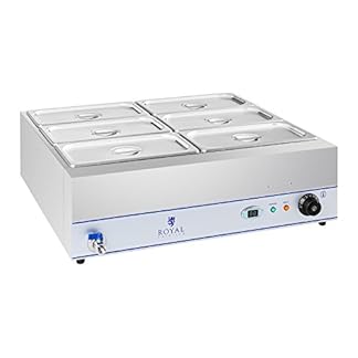 - Royal Catering RCBM-6W-2000 Bain Marie Wasserbad Speisenwärmer Bain Marie Behälter (2.000 Watt, 6 x GN-Behälter, Ablasshahn, Edelstahl, LCD-Display)€309,00Produkt kaufen