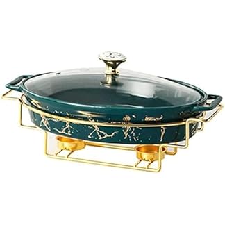 Buffetwärmer-Set, Keramik-Chafer mit Marmorimitat-Finish, mit Glasdeckel und Brennstoffhaltern, für Buffet-Hochzeiten, Partys, Bankette, Catering-Events,Grün a,36 * 22 * 5,5cm