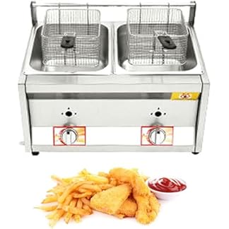 €530,77Produkt kaufenKJZQXYX 22L Gas-Fritteuse, Edelstahl-Doppeltank-Fritteuse mit 2 Körben, manuelle Temperatureinstellung für den gewerblichen Einsatz