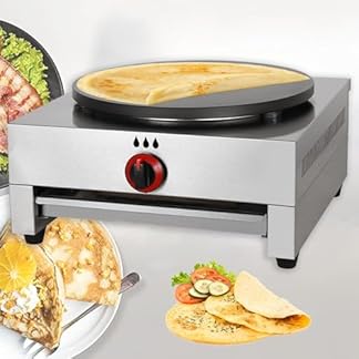 - Kommerzieller Gas-Crêpe-Maker, Crêpe-Maschine mit einem Kopf, mit 40 cm großen Gusseisenplatten, Schlackenauffangschale, Antihaft-Pfanne, für Eier, Pfannkuchen€371,54Produkt kaufen