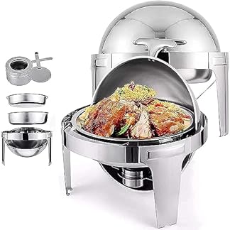€113,00Produkt kaufenChafing Dish mit 9 l Fassungsvermögen, vollwertiger Roll-Top-Chafer und Buffetwärmer aus Edelstahl mit Lebensmittelpfanne, Wasserpfanne und Brennstoffhaltern für alle Veranstaltungen