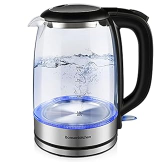 Bonsenkitchen Glas Wasserkocher, 1.7L 2200 W Elektrischer Wasserkessel, mit Blau LED-Beleuchtung, Automatische…