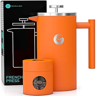 Coffee Gator French Press Kaffeebereiter – Thermo-Kaffeekanne aus Edelstahl für länger heißen Kaffee – 1 Liter – Orange…