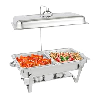 - Wilprep Chafing Dish Edelstahl 9L Buffet-Set Warmhaltebehälter Speisenwärmer Wärmebehälter Rechaud für Catering, Buffet und Party (2 Set 3×1/3 GN-Behälter)€94,99Produkt kaufen