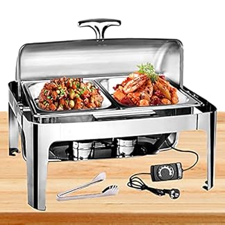 €43,90Produkt kaufenDBMGB Chafing Dish Edelstahl Warmhaltebehälter Essen Professionel Speisewärmer Elektrisch, Buffetwärmer mit 180° Rolltop…