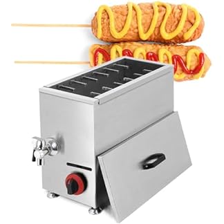 Beachtiful Kommerzielle Automatische Fritteuse für Hot-Dog-Sticks mit Großem Fassungsvermögen, 21 l, Gas-Friteuse für Hot-Dog-Snacks, mit Deckel und 2 Reihen mit je 12 Haken