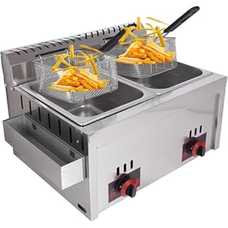 Generic Fritteuse aus Edelstahl mit zwei Behältern und 2 Körben – 10 l x 2 Gas-Fritteuse für gewerbliche Restaurants, Zuhause, Küche, manuelle Temperaturanpassung