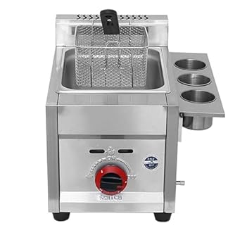 Gas-Fritteuse aus Edelstahl, kommerzielle LPG-Gas-Fritteuse – Aufsatz-Bratmaschine für Restaurant und Zuhause – inklusive Körben und Deckeln – leicht zu reinigen