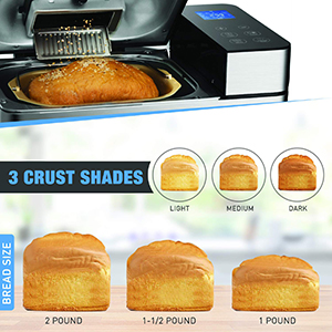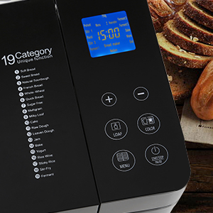 ♦Das Sichtfenster lässt den Backvorgang jederzeit verfolgen. LCD-Anzeige mit Soft-Touch-Bedienelementen ist einfach zu Bedienen. Der abnehmbare Deckel des Brotbackautomaten und des antihaftbeschichteten Brotfasses sind leicht zu reinigen