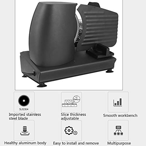 ✔ Sicherheit und leistungsstarker Motor – Der Slicer wird mit einem leistungsstarken Motor von 150 W angetrieben. was sicherstellt, dass es leicht durch hartes Fleisch und dickes Brot schneidet. Rutschfeste Saugfüße halten den Fleischschneider während der Arbeit stabil. Machen Sie sich keine Sorgen um die Gefahr des Schüttelns ..