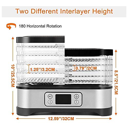 5 herausnehmbare und austauschbare Tabletts, die Höhe jedes Tabletts kann je nach Dicke der Zutaten sehr praktisch eingestellt werden; Mit dem transparenten Deckel können Sie jederzeit auf den trockenen Zustand des Lebensmittels ästimieren.