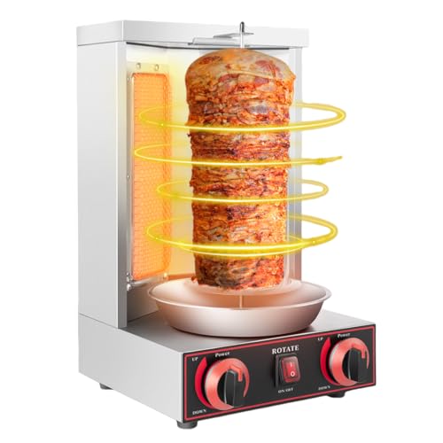 Mit unserer Gas-Döner-Maschine können Sie mühelos köstliches gegrilltes Fleisch zubereiten. Das Paket enthält eine Gas-Döner-Maschine, ein Stromkabel und eine englische Anleitung, so dass Sie ein bequemes und praktisches Werkzeug zum Grillen haben. Er kann 17,6 Pfund Fleisch jäh braten, und seine maximale Kapazität beträgt 26,45 Pfund, so dass Sie ihn beruhigt benutzen können.