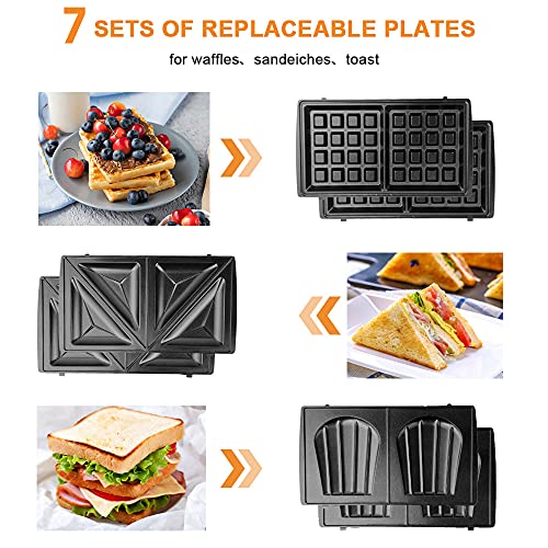 🧇【Multifunktions & 7 herausnehmbare Plattensets】Es ist mit 7 Paar austauschbaren Plattensets ausgestattet. Sie können für Sandwiches, Waffeln, BBQs, Fleisch, Kuchen, Paninis, Kekse, Kekse, Nüsse usw verwendet werden. Der Sandwichtoaster ist im modernen Design für schnell knusprige Sandwiches und gegrillten Toast im Dreiecksformat. Außerdem ist das Gerät geeignet, um verschiedene DIY-Lebensmittel nach Ihren Wünschen zuzubereiten. Eine Maschine erfüllt alle Ihre Anforderungen.