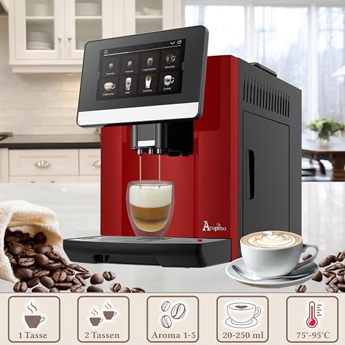 Acopino Kaffeevollautomat Kaffeemaschine Espressomaschine Barletta, großes Farbdisplay, mit Milchsystem für perfekten Kaffeegenuss (red)