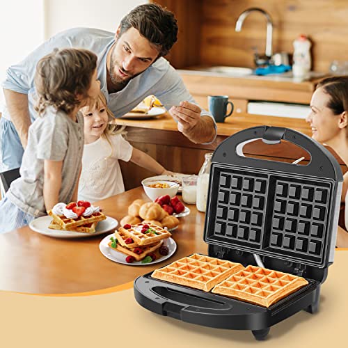 【Quadratisches Waffeleisen und gleichmäßiges Garen】Das quadratische Pfannendesign hilft effektiv dabei, den Waffelteig gleichmäßig zu verteilen und die perfekte Form der Speisen zu gewährleisten. Im Inneren befinden sich vier quadratische Platten, mit denen Sie die Waffel in mehrere Portionen festsetzen können. Darüber hinaus hilft die Leistung von 800 W dabei, das Essen effizienter zu verändern, so dass Sie innerhalb abzgl. Minuten köstliche Waffeln genießen können.