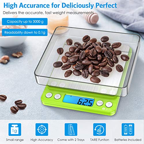 【Hohe Präzison】Ausgestattet mit hohen Präzision Sensoren liefert schnelle und präzise Messergebnisse, geeignet für Häuse, Küchen, Büros usw. Wiegt bis zu 3 kg von Lebensmitteln (Mindestgewicht 0.3 g).Diese Lebensmittelwaage bietet 6 Wägeeinheiten: g, oz, ozt, dwt, gn, ct.