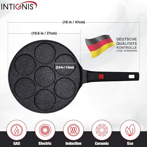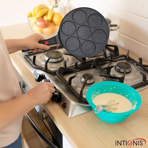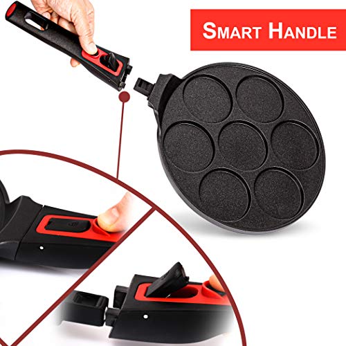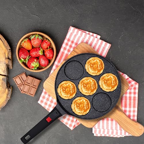 Kreieren Sie makellose Mini-Pfannkuchen oder Eier mit unserer Pfannkuchenpfanne mit 4 oder 7 Löchern, perfekt zum gleichzeitigen Zubereiten mehrerer Frühstücksfavoriten. Die runden Organisieren Acht geben einheitliche Größe und Form und sind darum ideal für ein amerikanisches Pfannkuchenerlebnis.