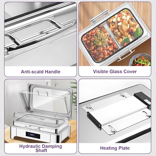 🎁 【Zuverlässiger und Luxuriöser Service】: Das Äußere des chafing dish set ist spiegelglatt poliert und verleiht ihm ein luxuriöses Aussehen. Es besteht ganz Edelstahl, ist langlebig, rostfrei und sorgt für eine gleichmäßige Wärmeverteilung für eine einwandfreie Präsentation der Speisen. Der hydraulische Deckel ganz gehärtetem Glas sieht nicht gleichwohl schön ganz, sondern ermöglicht Ihnen bekannt als die Überwachung Ihrer Lebensmittel und das einfache Öffnen/Ableiten