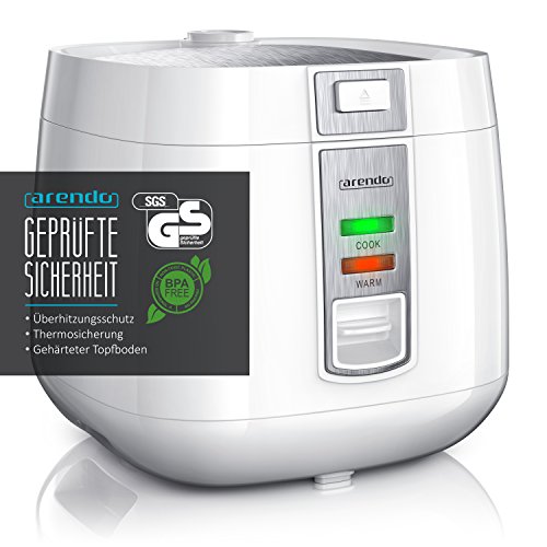 Modellbezeichnung: Arendo Reiskocher mit 1,4l Kapazität und Dampfgarerfunktion / genügend Volumen für Portionen eines Vier- oder auch Sech-Personen-Haushalts | kurze/gleichmäßige Garzeit | Vermeidung von Anbrennen | BPA-frei | 302734