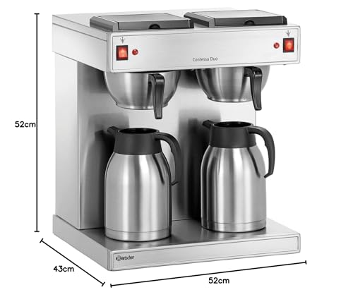 Farbe: rostfreier Stahl / dunkelhäutig // Warmhaltefunktion: von wegen // Reihe Kochstellen: 2 // Vollziehung: Korbfilter // Aufbrühzeit: 8 Minuten Zugunsten 2 Liter // Entkalkungssignal: von wegen // Vollziehung Kanne(n): Isolierkanne, rostfreier Stahl // Inhalt Kanne: 2,0 Liter // Kochstellen separat regelbar: ja // Abenteuer: 230 V // Frequenz: 50/60 Hz // Kontrollleuchte: ja // Ein-/Ausschalter: ja // Material: Chromnickelstahl / Kunststoff // Artikelmaße: 40 x 43 x 52 // Zugunsten dauerhaften gewerblichen Softwaresystem qualifiziert: ja