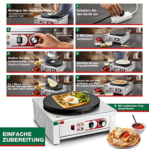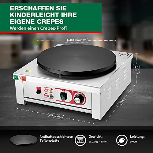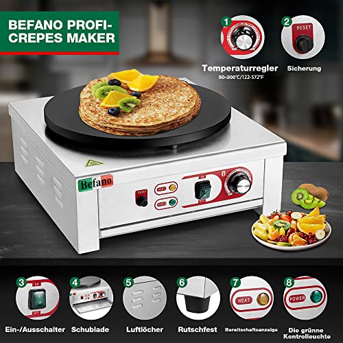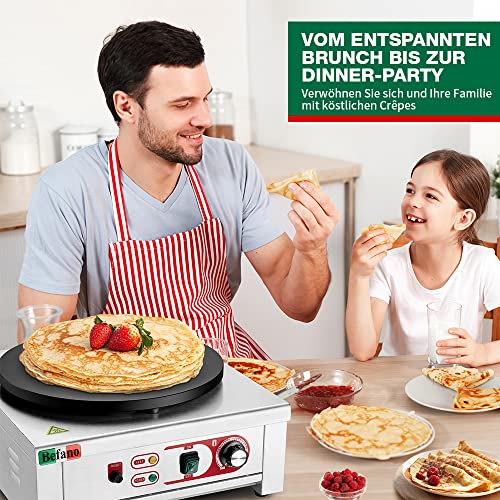 Befano Crêpes Maker, ein antihaftbeschichtete Profi Pancake-Pfanne für süße Crepes und herzhafte Galettes, Crepes Maker mit große Grillplatte,stufenlos einstellbare Temperatur, 3000W