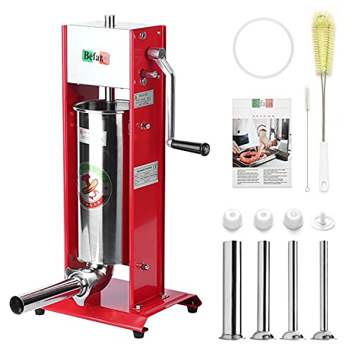 ☞BENUTZERFREUNDLICH: Abgerundet wird das Design durch die ergonomische Handkurbel, die stabil verarbeitet ist und sich leicht bedienen lässt. Wählen Sie mit dem Handkurbel die 2 Geschwindigkeit, so dass Sie schnell und einfach Wurst erschaffen kann. Der Befano Wurstfüller hat außerdem bei dem Entlüftungsventil einen Kolben, dadurch dass Ihre Wurst gleichmäßiger wird. Das Füllrohr ist mit dem Edelstahlventil eng verbunden, so tritt kein Hackfleisch während des Betreibs aus.