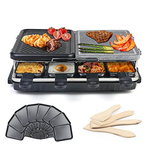 ALU-GUSSPLATTE: Die Platte des Raclettes ist abnehmbar und antihaftbeschichtet unabhängig davon ist sie kratzfest und bietet viele verschiedene Möglichkeiten zum grillen