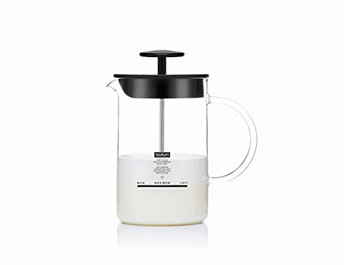 Bodum 1446-01 Milchschäumer mit Glasgriff Latteo, schwarz, H 18cm, B 15,6cm, L 10cm