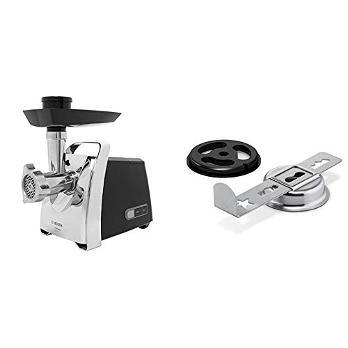 Bosch MFW67440 ProPower Fleischwolf, Plastik, schwarz/silber & MUZ9SV1 Spritzgebäckvorsatz aus Edelstahl für Fleischwolf…