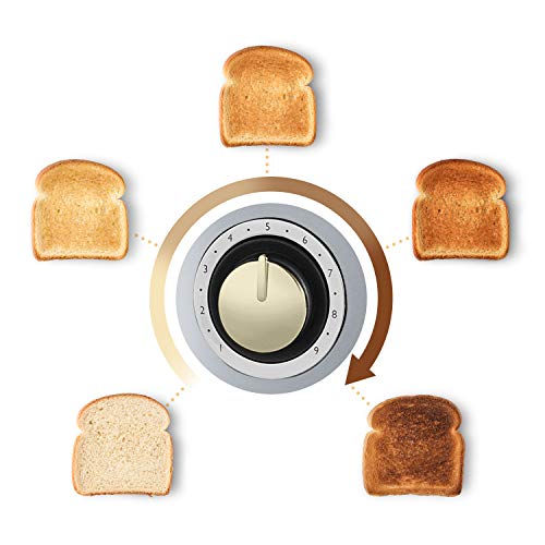 Die einstellbare Bräunungsskala sowie die Funktionen für das Auftauen und Warmhalten machen das perfekte Toasten von Brot, Bagels, Crumpets und mehr zum Kinderspiel