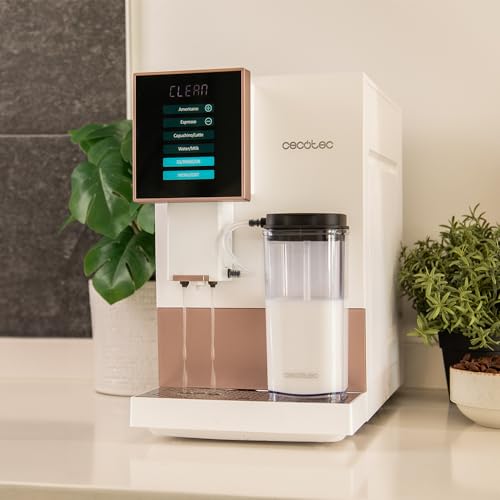 Cecotec Superautomatische Kaffeemaschine Cremmaet Compactccino White Rose, 19 Bar, Thermoblock-System, frisch gemahlene Bohnen Plug&Play, 150 g Kaffeebohnentank Mühle, 1,1 L Wassertank, 400 ml Milch