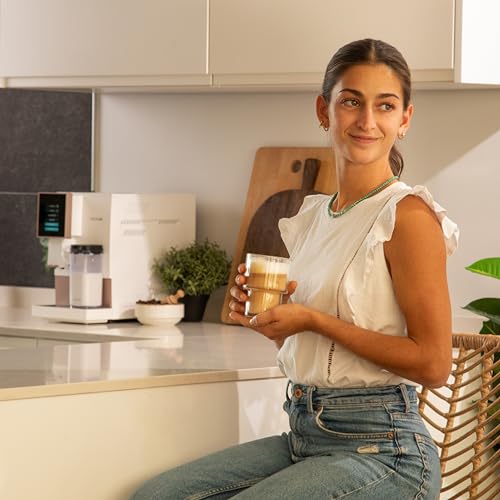 Kompakte Superautomatische Kaffeemaschine, die Espresso und Americano aus frisch gemahlenen Kaffeebohnen auf Knopfdruck zubereitet dank des Plug&Play-Systems. 19-Bar-Druckpumpe für die beste Crema und das maximale Aroma bei jedem Kaffee.