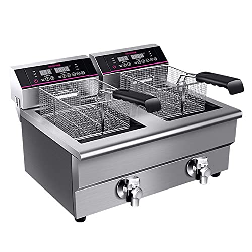 LEISTUNGSSTARKE LEISTUNG & GEEIGNETE KAPAZITÄT: Die kommerzielle Fritteuse Ausgestattet mit einem leistungsstarken 5000-W-Heizelement in jedem Becken garantiert diese Fritteuse ein schnelles Frittieren von Speisen und hält die Öltemperatur aufrecht, mit einer Körbekapazität von 20 l / 21,1 QT oder 30 l / 31,7 QT, perfekt für gewerbliche und Heimgebrauch.