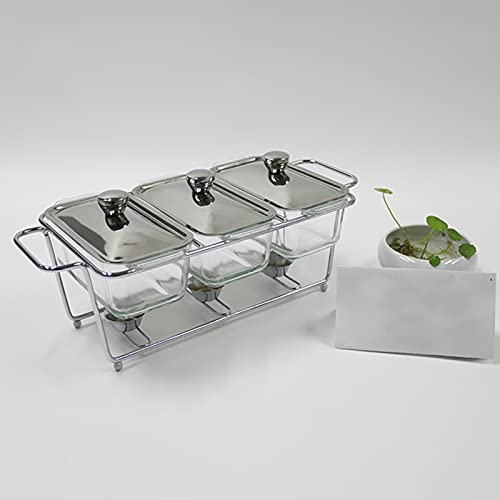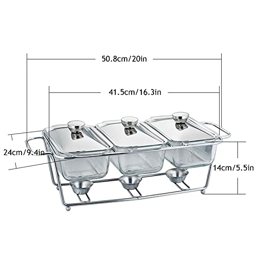 Chafing Dish Alkohol-Herd-Buffetwärmer aus Edelstahl mit 3 Glas-Tabletts – ideal für Catering, Partys und Hochzeiten