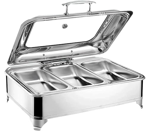 Chafing Dish verspricht, Ihre Speisen heiß zu halten, während die Kuppelabdeckung dafür sorgt, dass Feuchtigkeit erhalten bleibt. Attraktives Gericht macht Ihre Speisenpräsentationen attraktiv und einladend. Praktisches Chafer-Set ermöglicht einfache Einrichtung, Lagerung und Transport. Sie können jederzeit und überall einen köstlichen dampfenden heißen Topf mit Ihrer Familie und Freunden genießen. Produktmerkmale: – Der Deckel des Topfes ist abstandslos geschlossen, um zu unterbinden, dass die Suppe herausspritzt. Die Robustheit des Designs ist sehr leistungsfähig und kann das Essen köstlich halten. – Edelstahlkonstruktion für überlegene Festigkeit und Korrosionsbeständigkeit, Chafers sind in einer Diversität von Größen und Stilen erhältlich, um zu jedem Anlass zu passen, formell oder informell. – Es ist perfekt für jeden Anlass, wie Hochzeiten, Partys, Brunches, Hotelfrühstücksbereiche, Bankette, Catering-Events und Selbstbedienungsumgebungen. Lieferumfang: 1 x Chafing Dish