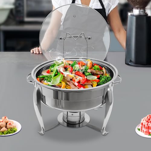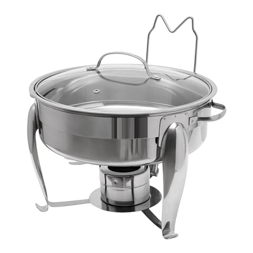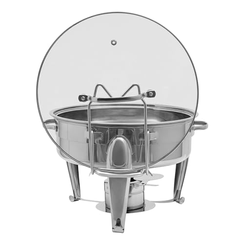 Dieser runde, mit Alkohol beheizte Chafing Dish bietet genug Fassungsvermögen, um den Bedarf für mehrere Mahlzeiten zu decken und eignet sich für Familienessen oder Treffen mit Freunden. Dank des durchsichtigen Glasdeckels können Sie die darin befindlichen Speisen leicht abtasten. Das Material aus rostfreiem Stahl ist zäh und langlebig und leitet die Wärme gleichmäßig, so dass der ursprüngliche Geschmack der Zutaten erhalten bleibt und eine warme und gemütliche Atmosphäre auf dem Tisch entsteht.